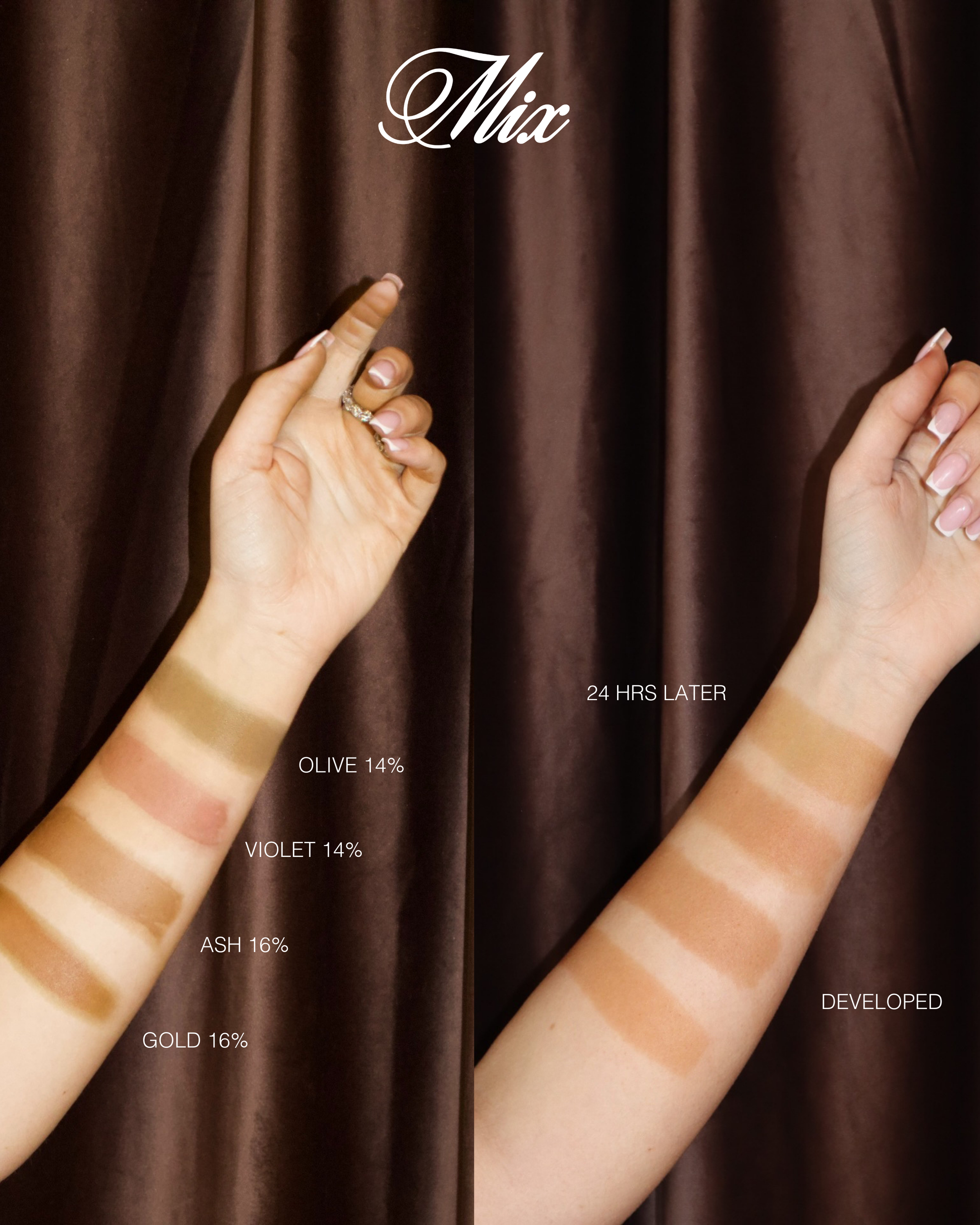 Ash (16%)—Your ultimate orange neutralizer. For clients who want a cool, true brown tan—never brassy.